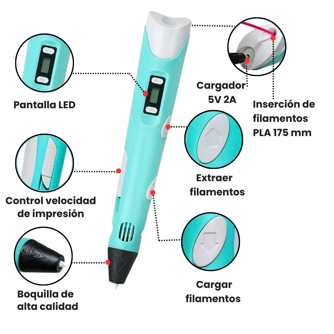 MagicArt 3D es más que un lápiz 3D; es una herramienta educativa diseñada para fomentar la imaginación y el aprendizaje activo en niños y adultos. Inspirado en los principios Montessori, este bolígrafo 3D permite a los pequeños construir, diseñar y explorar de manera práctica, alejándolos de las pantallas mientras desarrollan habilidades motoras, pensamiento tridimensional y creatividad.