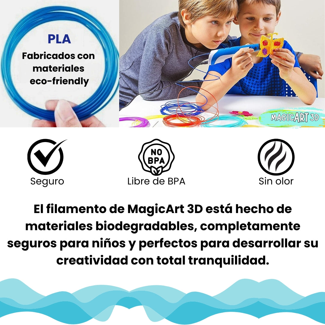 Sí, MagicArt 3D utiliza filamentos biodegradables y libres de BPA, completamente seguros para los más pequeños.