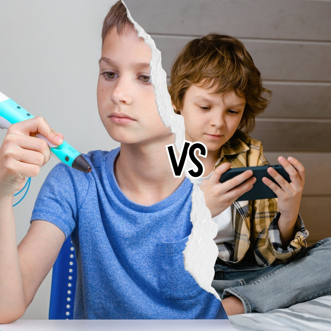 Descubre la diferencia: mientras las pantallas frenan la imaginación y afectan el desarrollo, el bolígrafo MagicArt 3D estimula la mente y aleja a los niños de los efectos negativos del tiempo frente a dispositivos. ¡Un juego creativo y saludable! 🎨✨